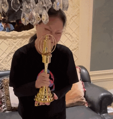 看画面中的环境似乎是在S妈的家里,对面有助理在摄像,S妈看到奖杯辱骂常振奋的,但提起来之后,就又哭又笑,直言“补上了我的心,谢谢宝贝。”